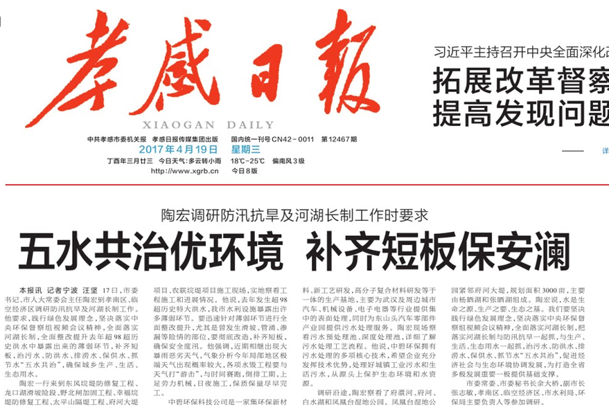 下一篇孝感日報(bào),市委書記陶宏到我司調(diào)研