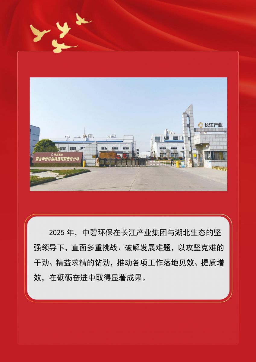 下一篇中碧環(huán)保榮獲2025年度先進集體榮譽近日,湖北省生態(tài)環(huán)保有限公司召開湖北生態(tài)2026年工作會議暨第一屆第二次職工代表大會,中碧環(huán)保榮獲2025年度先進集體榮譽。 2025年中碧環(huán)保經(jīng)營亮點突出。利潤總額與凈利潤超額完成年度目標,成本控制與盈利能力表現(xiàn)優(yōu)異。業(yè)務(wù)多點突破,成功落地東拓、下陸、九江等污水委托運營項目,實現(xiàn)從0到1、從內(nèi)部協(xié)同到自主拓展、從省內(nèi)到省外的跨越。科技創(chuàng)新成果豐碩,完成高新技術(shù)企業(yè)復(fù)審,獲批湖北省中小企業(yè)技術(shù)中心、第四批科技型中小企業(yè),授權(quán)專利8件,獲省創(chuàng)新創(chuàng)業(yè)大賽二等獎,落地政策獎補120萬元。全年安全環(huán)保零事故,黨風(fēng)廉政零違規(guī)。 2026年是“十五五”起步開局之年,也是中碧環(huán)保爬坡過坎的一年。公司將錨定主責(zé)主業(yè),聚焦環(huán)保工程、污水處理、運營托管核心業(yè)務(wù),以“穩(wěn)增長、增效能、提質(zhì)量、強創(chuàng)新”為抓手,強化黨建引領(lǐng)、深化科技創(chuàng)新、優(yōu)化人才保障、提升運營質(zhì)效,推動公司實現(xiàn)規(guī)模與質(zhì)量雙提升,全力打造工業(yè)廢水處理領(lǐng)域標桿企業(yè)。 |