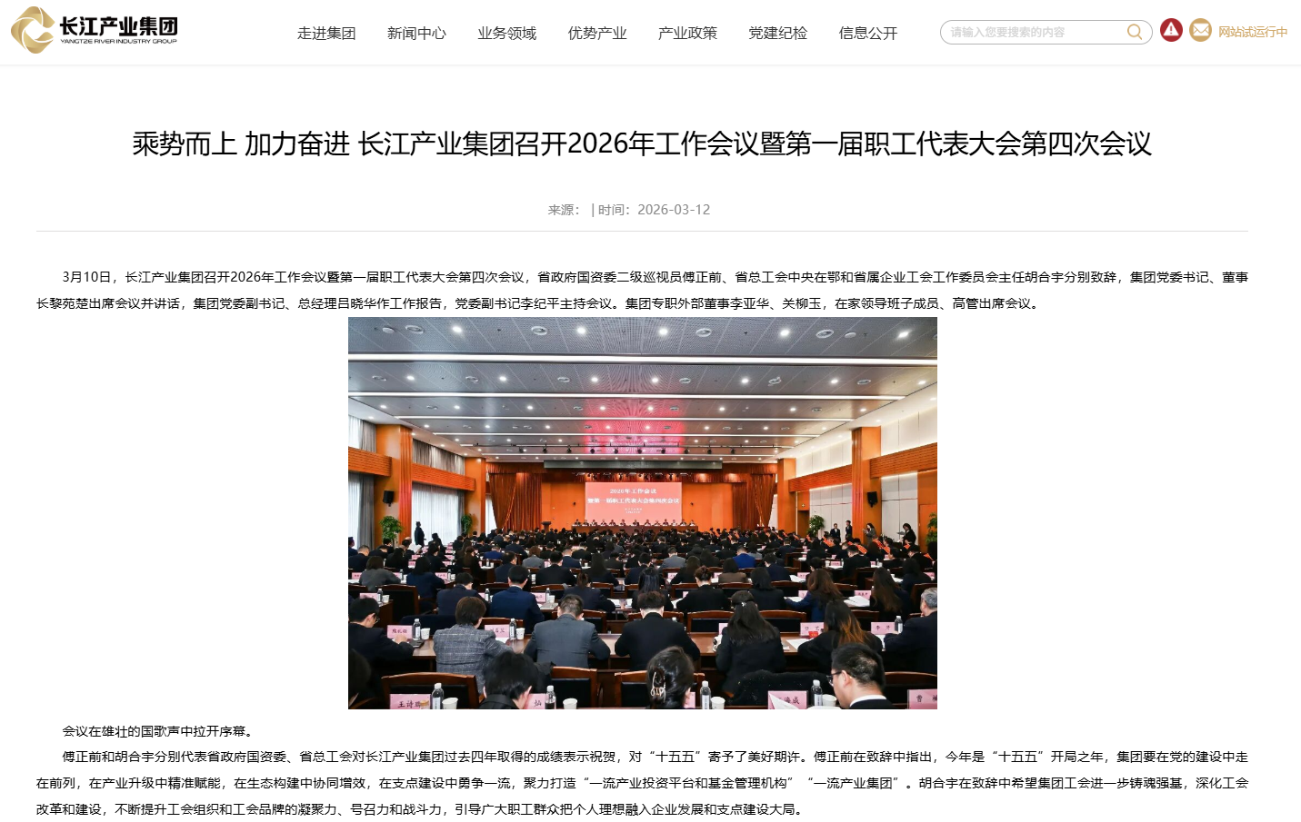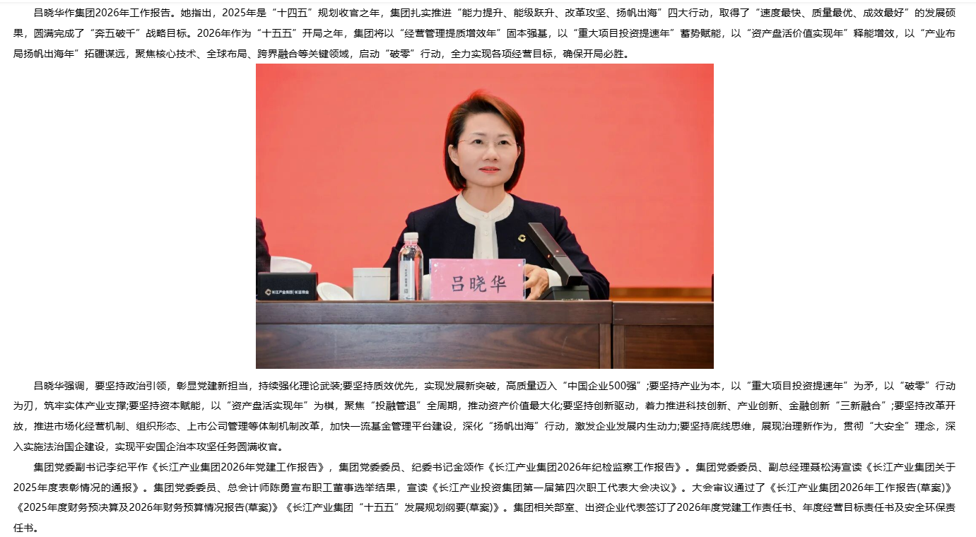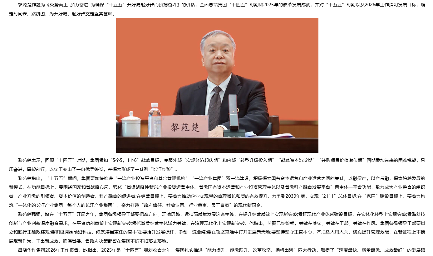 乘勢而上 加力奮進(jìn) 長江產(chǎn)業(yè)集團(tuán)召開2026年工作會議暨第一屆職工代表大會第四次會議